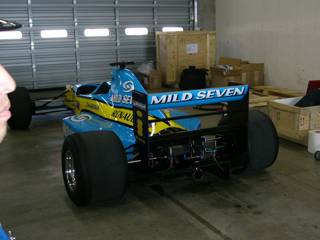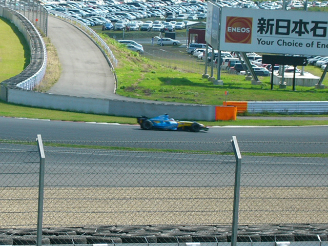 この写真は片山右京さんが乗る前のレガーノのデモ走行ですがドライバーはルノーのアロンソ・フィジケラ・コバライネンでかなりの迫力物でした。