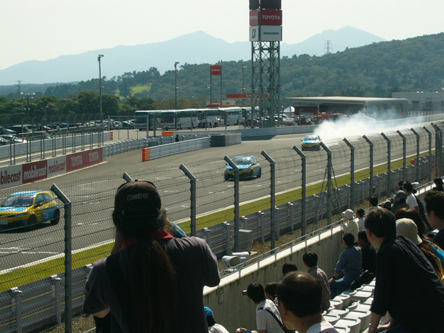 眠けと戦いながらアロンソのF1のデモ走行を待っていましたがちょっと中だるみしたので別コースでやっているドリフト走行を見に行きました。