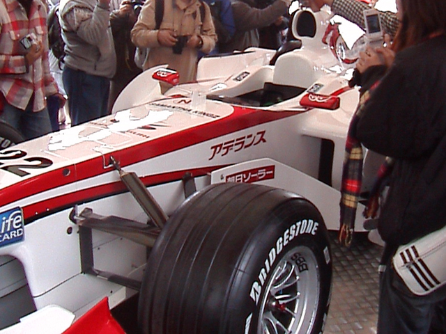 やっと時間になりF1のデモ走行を見に行きました。そのイベントの最後でアロンソがF1、フィジケラが2シーターカー、コバライネンがレガーノで登場しハンデつきのレースが行われました。過去にマクラーレンがホンダのセダン車(車種は忘れました)とポルシェとF1でどれだけ差がついてゴールするかと言うのを思いだしました。